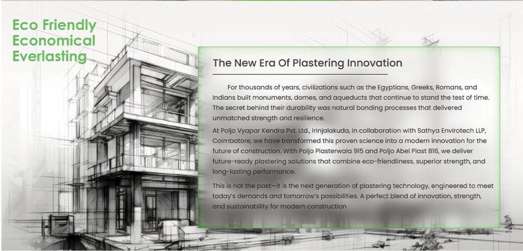 Before the dominance of cement-based materials, natural lime plaster formed the foundation of timeless architecture. Poljo builds on that legacy, introducing cement-free, polymer-enhanced plastering solutions that combine the wisdom of tradition with the power of modern chemistry.